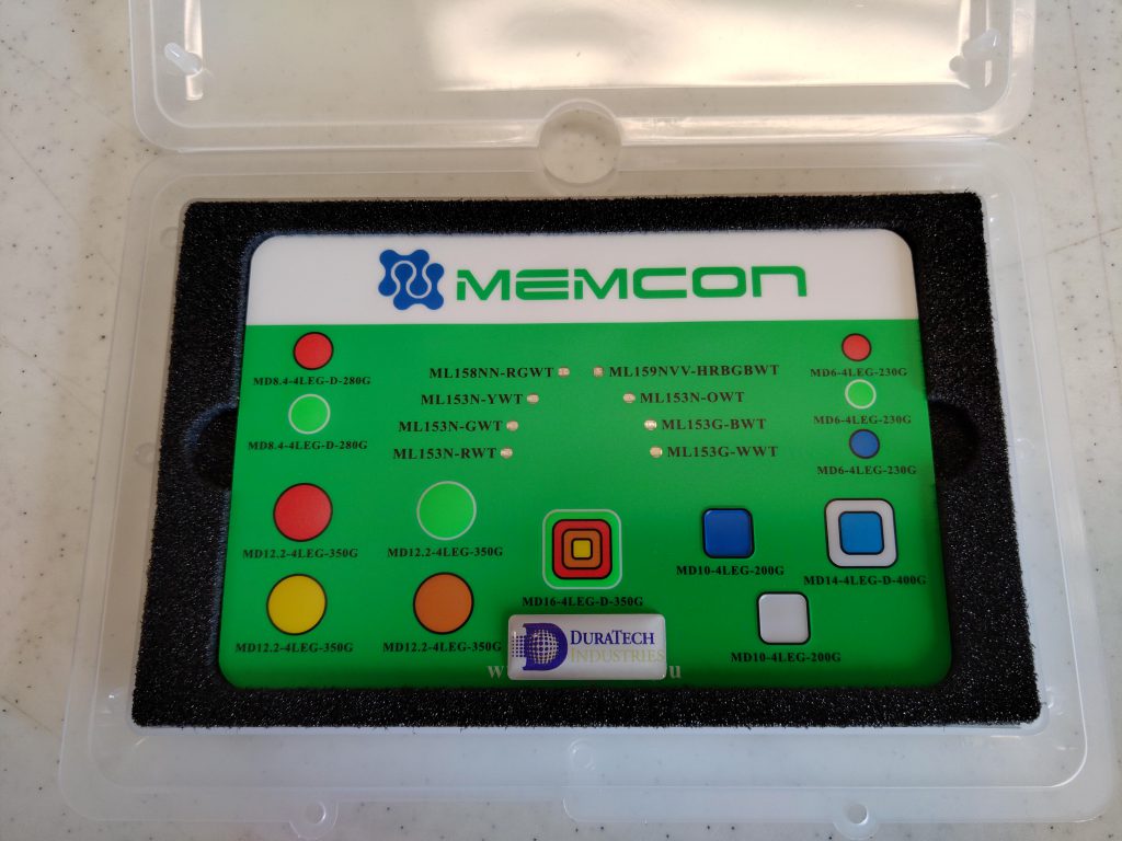 This powered unit demonstrates different tactile (pressure) feedback by use of different metal domes. It also shows various button styles.
